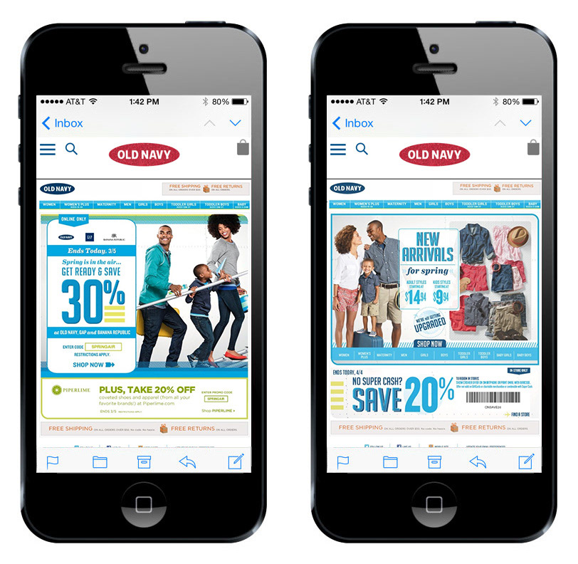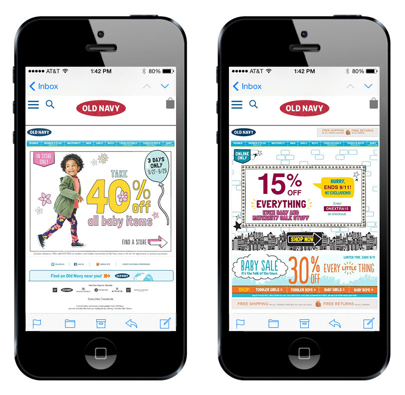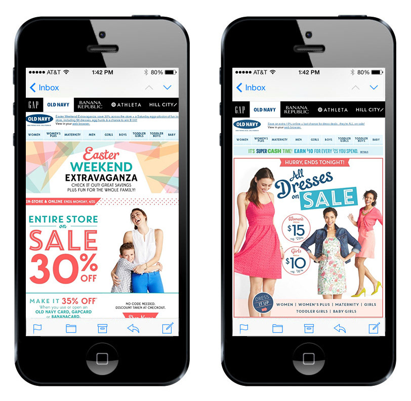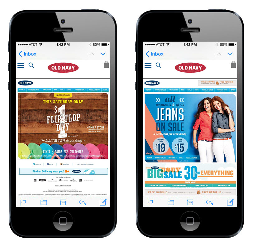 Mobile Emails sent to customers informing them about in store events, sales, promotions and new merchandise